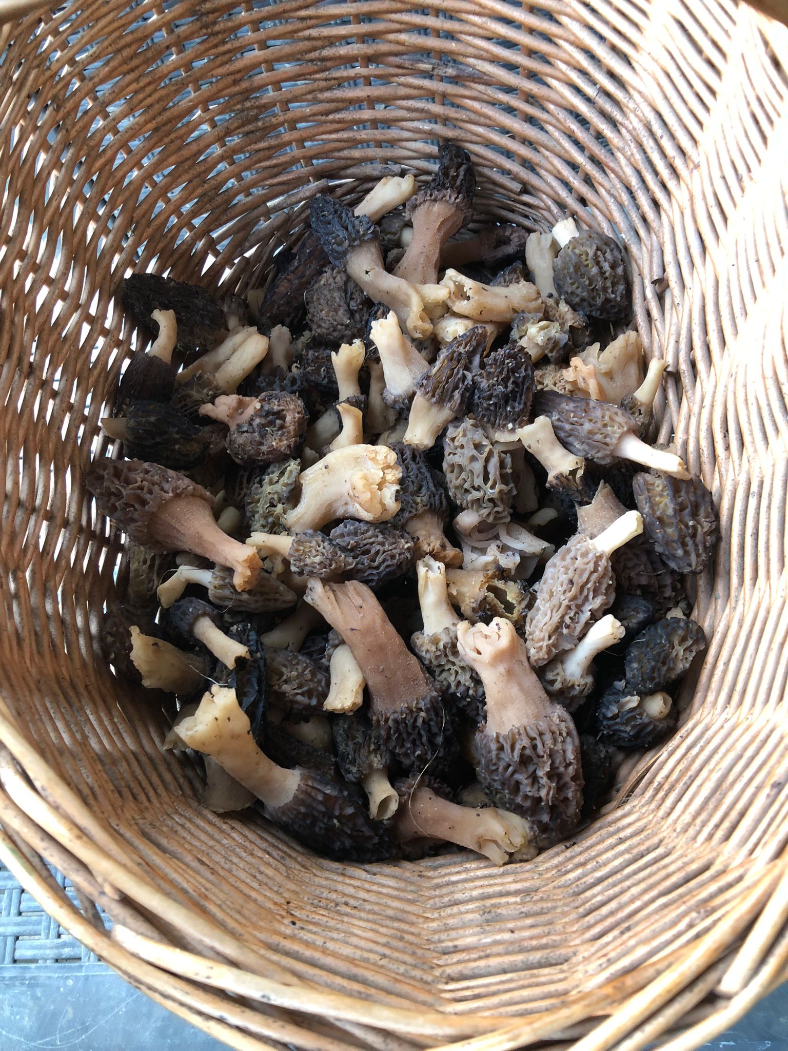 Panier de Morilles coniques et Morilles communes